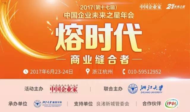 由《中國企業(yè)家》雜志社主辦、浙江大學(xué)聯(lián)合主辦的 2017(第十七屆)中國企業(yè)未來之星年會將于 6 月 23 日至 24 日在浙江杭州舉行。