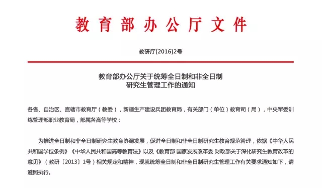 《通知》強(qiáng)調(diào),全日制和非全日制研究生實(shí)行相同的考試招生政策和培養(yǎng)標(biāo)準(zhǔn)。