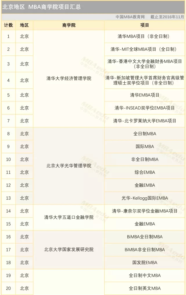 今天小編匯總北京地區(qū)的MBA項目,供大家了解~