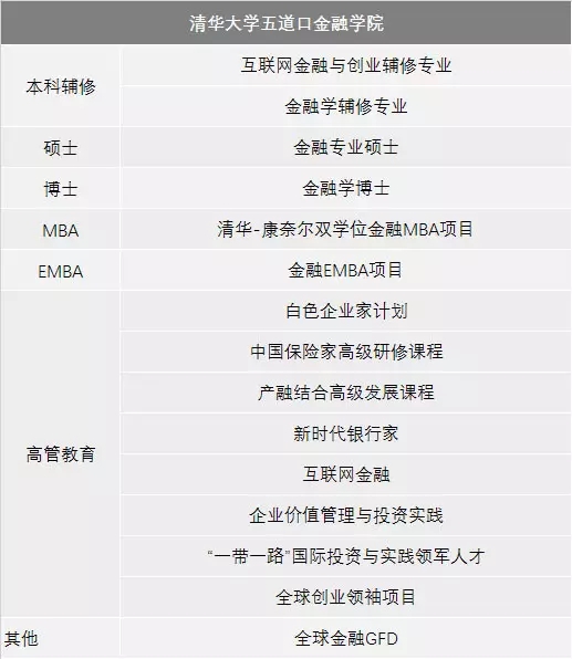 管理教育主要參考MBA、EMBA和高管教育,從兩所學(xué)院開設(shè)的教學(xué)項(xiàng)目可以看出,清華經(jīng)管學(xué)院的管理教育是綜合性和通用的,五道口金融學(xué)院院如其名,主打金融人才的培養(yǎng),并將自己定位成“金融變革的推動(dòng)者”。