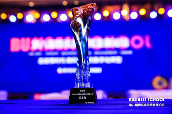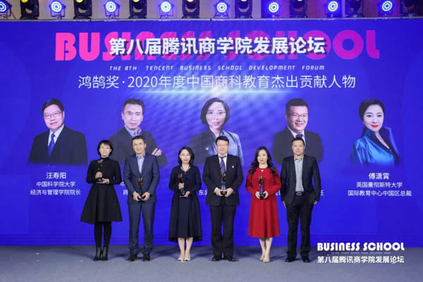 論壇上,霍寶鋒被評為“鴻鵠獎·2020年度中國商科教育杰出貢獻(xiàn)人物”。