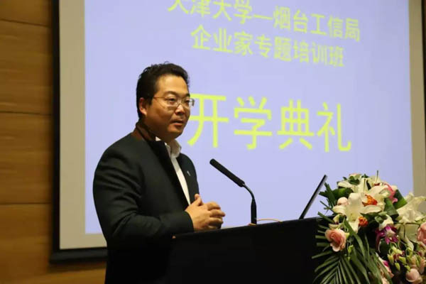 開班典禮由天津大學宣懷學院EDP中心主任夏爽主持,煙臺工信局黨組成員孫成國、煙臺市工信局培訓與交流科科長王培勇、天津大學管理與經(jīng)濟學部主任霍寶鋒、天津大學宣懷學院副院長鄒強出席開班典禮并講話。