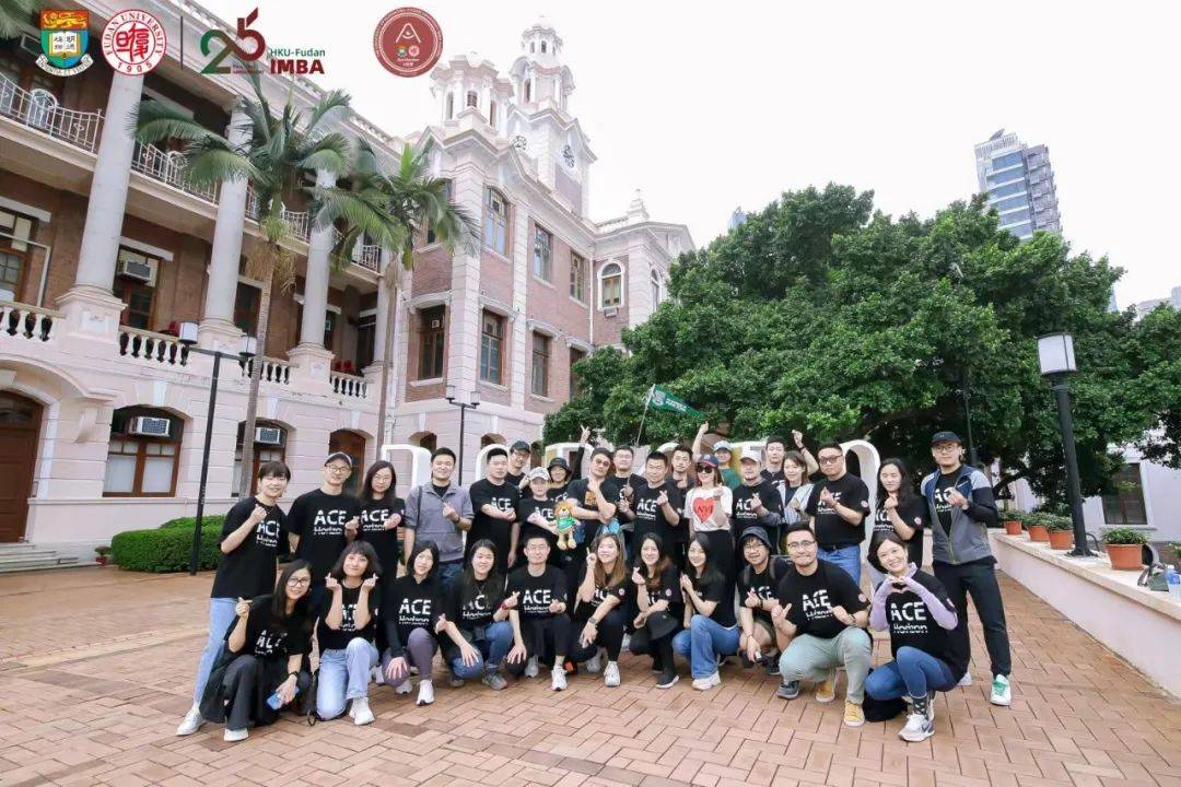 港大經(jīng)管學(xué)院校友在港大百周年校園校名墻合影