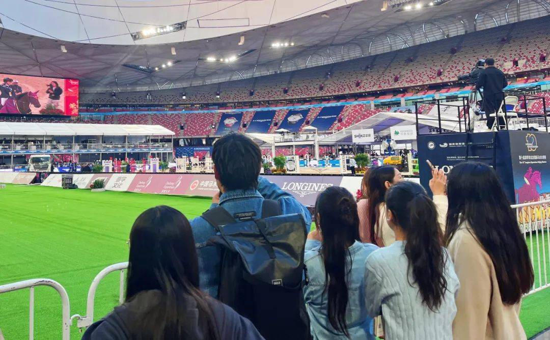 今天是大賽進(jìn)行的第五天,公開(kāi)賽(100cm)、騎士之夜和職業(yè)騎手配對(duì)賽(145cm)依次進(jìn)行,同學(xué)們?cè)谶@里切身地感受著國(guó)內(nèi)規(guī)格最高、規(guī)模最大的馬術(shù)旗艦賽事盛會(huì),一次次被強(qiáng)大的騎手陣容、盛大的賽事規(guī)模和豐富的賽事體驗(yàn)所震撼,深刻體會(huì)到了走在前沿的國(guó)際馬術(shù)浪潮的強(qiáng)大力量。同學(xué)們?cè)谟H身參與這場(chǎng)國(guó)際賽事的過(guò)程中,對(duì)體育賽事產(chǎn)品設(shè)計(jì)、賽事IP開(kāi)發(fā)與運(yùn)營(yíng)、體育賽事數(shù)字資產(chǎn)的價(jià)值提升等方面有了新的認(rèn)知。