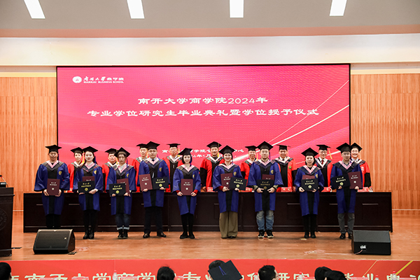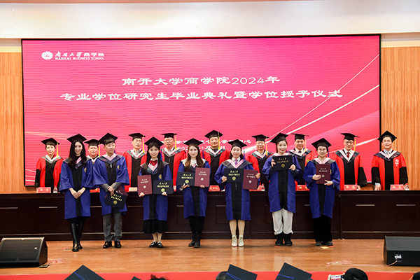 在學位授予及撥穗儀式中,畢業(yè)生們依次上臺,南開大學商學院學位授予儀式導師白長虹院長、張繼勛副院長、袁慶宏教授、梁峰教授、黃福廣教授、周建教授、李季教授、郝臣教授、徐曼教授為畢業(yè)生頒發(fā)畢業(yè)證書并撥穗正冠。滿滿的儀式感為畢業(yè)生們的在校生涯畫上了圓滿的句號,畢業(yè)典禮至此落下帷幕。