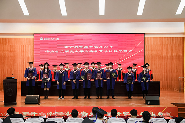 1月13日,2024年南開大學商學院專業(yè)學位研究生畢業(yè)典禮暨學位授予儀式在商學院大報告廳隆重舉行。南開大學商學院院長白長虹教授、商學院副院長張繼勛教授、專業(yè)學位教學中心主任袁慶宏教授、專業(yè)學位教學中心副主任梁峰副教授,商學院教授代表:黃福廣教授、周建教授、李季副教授、郝臣副教授、徐曼副教授作為學位授予儀式的導師們于主席臺就座;同時,南開大學商學院黨委書記王堅、“潤身學堂”畢業(yè)講座特邀嘉賓南開大學新聞與傳播學院院長劉亞東教授、商學院副院長田莉教授、南開大學MBA校友會會長金曉劍,校友導師代表劉向東、尚志文、周宏斌,專業(yè)學位教育中心主任陳琰以及專業(yè)學位中心的各位老師們也出席了畢業(yè)典禮,共同見證畢業(yè)生們的重要時刻。畢業(yè)典禮由南開大學商學院黨委副書記、副院長周翠翠主持。