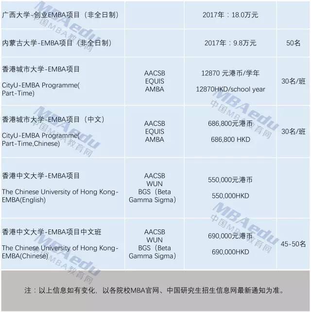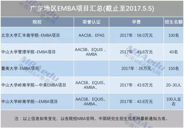 昨天小編給大家推送了北京地區(qū)EMBA項(xiàng)目匯總,現(xiàn)在給大家呈上 上海、廣東及全國(guó)其它地區(qū)EMBA項(xiàng)目的匯總情況。我們分別對(duì)國(guó)內(nèi)EMBA項(xiàng)目的國(guó)際榮譽(yù)認(rèn)證、學(xué)費(fèi)和招生名額做了統(tǒng)計(jì),希望能幫助您選擇合適的項(xiàng)目就讀。