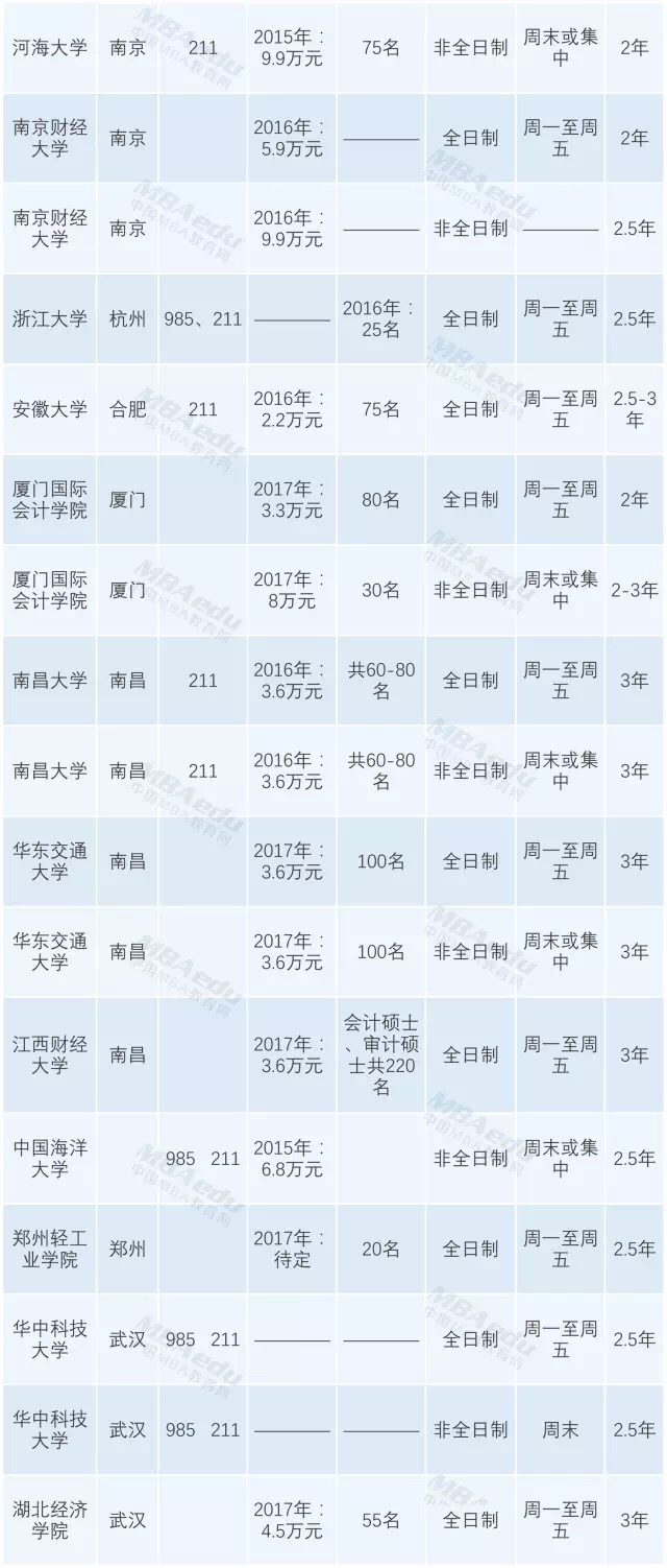 此外,全國(guó)共有45所院校開(kāi)設(shè)了MPAcc項(xiàng)目。