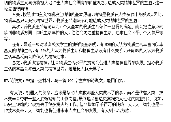 57.論說文:根據(jù)下述材料,寫一篇700字左右的論說文,題目自擬。