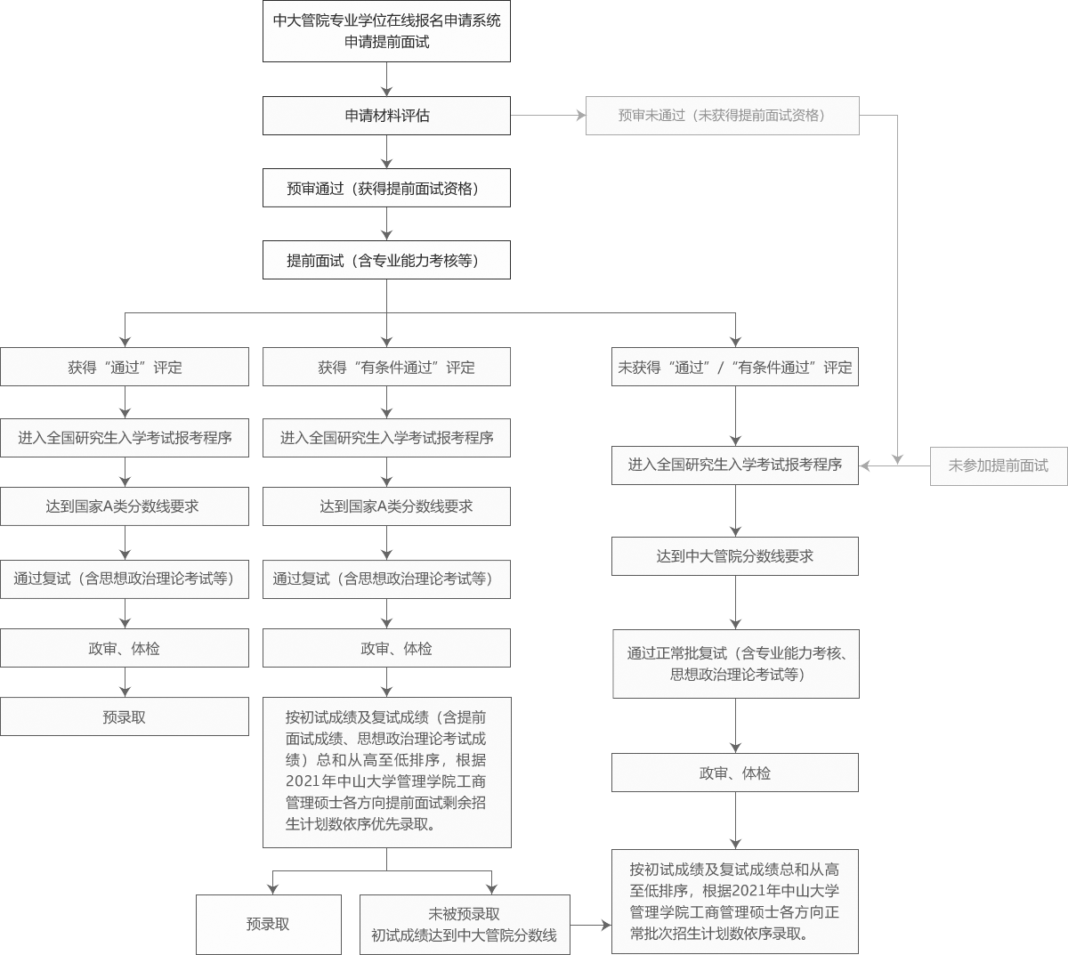 持有有效期內(nèi)GMAT 680分或以上,GRE 310分或以上,新TOEFL 100分或以上,IELTS(A類(lèi))6.5或以上成績(jī)的申請(qǐng)人、持有CPA、CFA的申請(qǐng)人,在同等條件下,可優(yōu)先獲得提前面試資格(須于報(bào)名系統(tǒng)內(nèi)提交相關(guān)材料)。