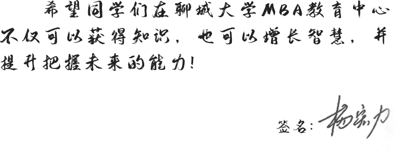 聊城大學(xué)MBA教育堅(jiān)持以結(jié)合為基礎(chǔ)、以學(xué)生為中心、以需求為導(dǎo)向,以解決現(xiàn)實(shí)問(wèn)題為出發(fā)點(diǎn),積極響應(yīng)高質(zhì)量發(fā)展時(shí)代要求,秉承“經(jīng)世致用、富國(guó)裕民”辦學(xué)理念,以質(zhì)量管理與公司金融為特色,提供與國(guó)際國(guó)內(nèi)一流MBA同步的課程,采用先進(jìn)的教學(xué)模式,打造高端溫馨的學(xué)員交流平臺(tái),致力于激發(fā)喚醒企業(yè)家精神,提升企業(yè)家管理能力,培養(yǎng)國(guó)際化、本土化、差異化的復(fù)合型高級(jí)管理人才。
