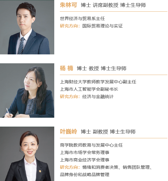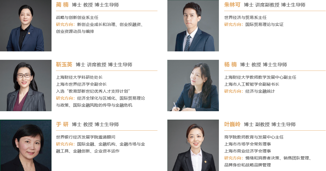 學(xué)校擁有國(guó)內(nèi)一流的商科師資力量,培育和凝聚了一大批在商科領(lǐng)域具有高水平研究和教學(xué)能力的專家學(xué)者。全校商科教師總?cè)藬?shù)超過700人,78%的教師為教授或具有中級(jí)以上職稱,95%的教師具有博士學(xué)位,在上海財(cái)經(jīng)大學(xué)商學(xué)院有超過50%的教師擁有海外知名大學(xué)博士學(xué)位。項(xiàng)目還聘請(qǐng)了在國(guó)際上享有卓越學(xué)術(shù)聲譽(yù)的14名特聘教授和5名外方系主任擔(dān)任國(guó)際化特聘教授,同時(shí)邀請(qǐng)富有實(shí)踐經(jīng)驗(yàn)的業(yè)界企業(yè)家、高管和優(yōu)秀校友參與課堂教學(xué)和實(shí)踐教學(xué),從面向世界、面向未來、面向現(xiàn)代化的角度為課程內(nèi)容作出應(yīng)用層面的解讀。