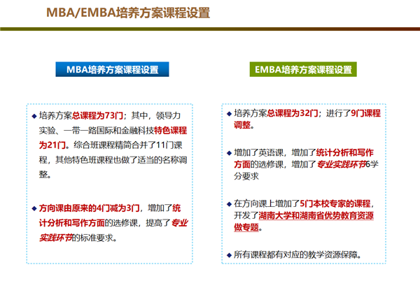 新時代,新商科,新發(fā)展,湖南大學(xué)開啟行業(yè)領(lǐng)導(dǎo)者和領(lǐng)域管理人才商科培養(yǎng)新模式,構(gòu)建一流MBA/EMBA人才培養(yǎng)教育體系,實現(xiàn)湖南大學(xué)MBA/EMBA一流人才培養(yǎng)目標(biāo)。